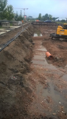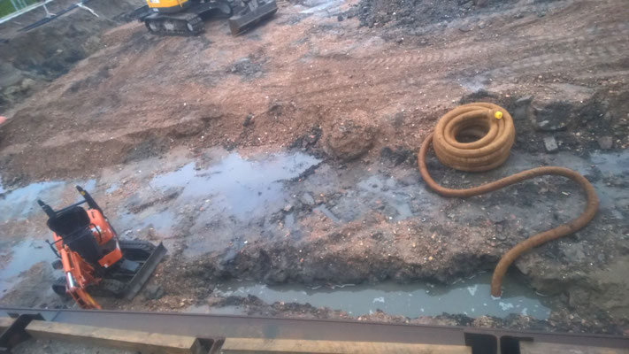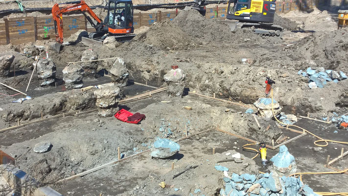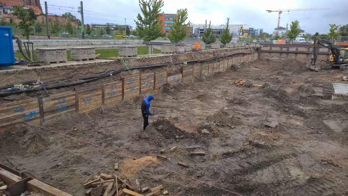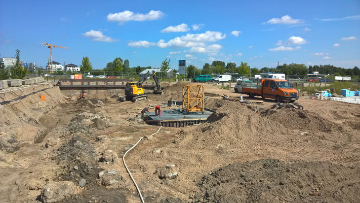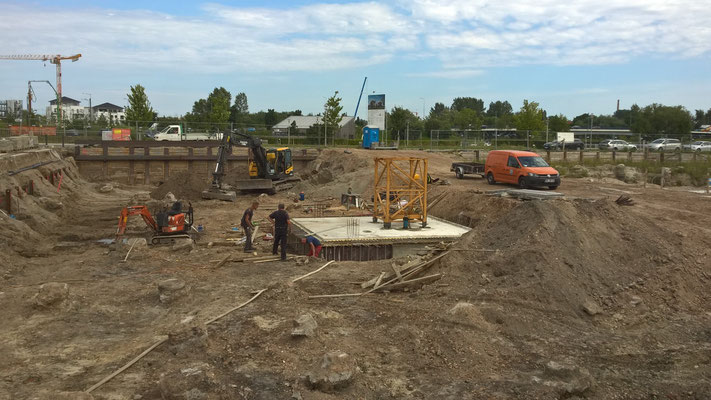 Wer nah am Wasser baut braucht auch eine Drainage! Das Kranfundament kommt in die Tiefgarage!