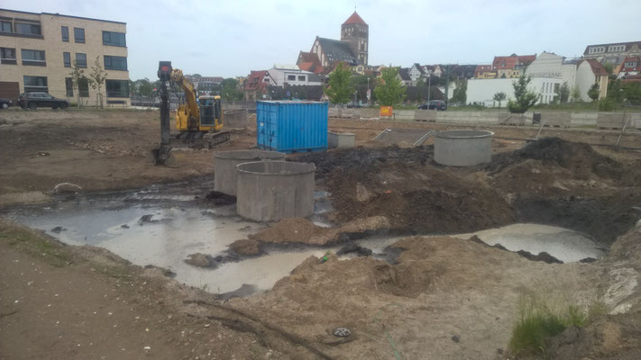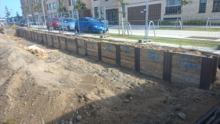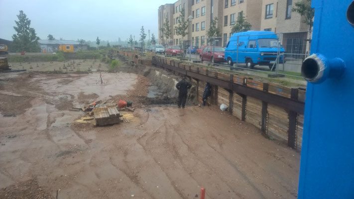 Die Munitionssuche ist abgeschlossen und der Verbau beginnt! Baustrom und der Container für die Wasserhaltung sind auch schon da!