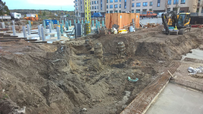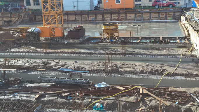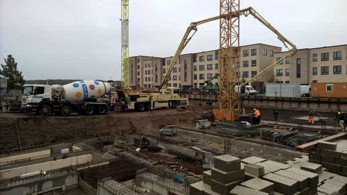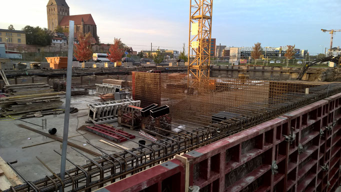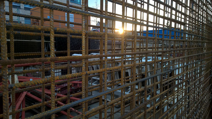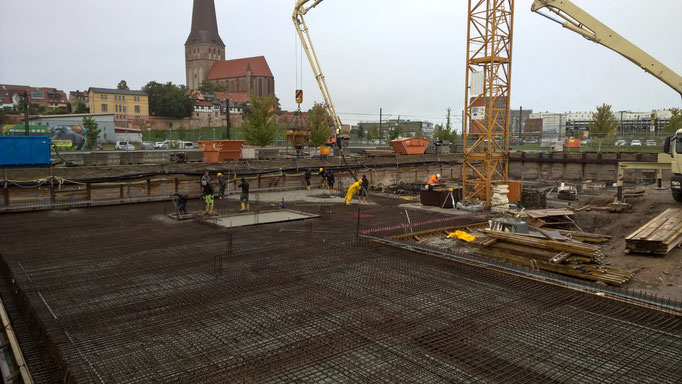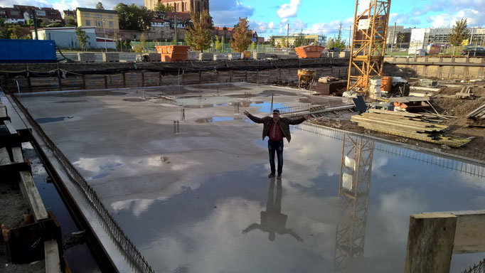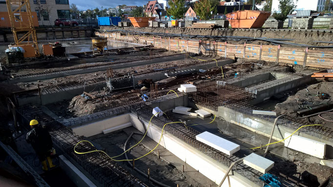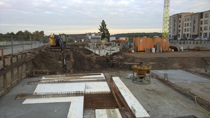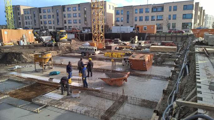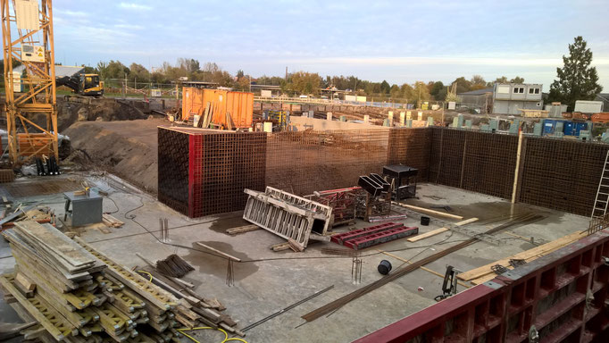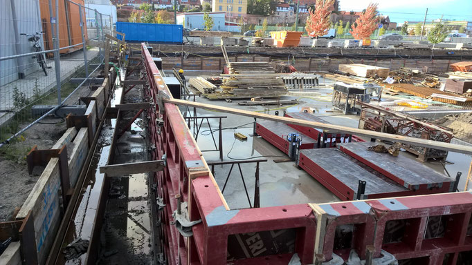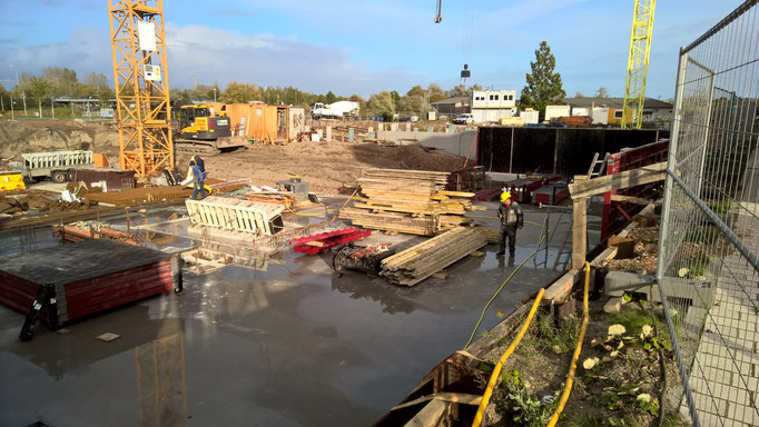 Die Bodenplatte nimmt Gestallt an! Einige Schalungen für die Wände werden schon aufgestellt!